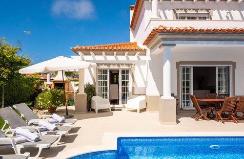 Casa Isabella is an luxury villa located within walking distance of vast unspoilt sandy beaches on the Praia d'El Rey Golf and Beach Resort with its award winning, championship golf course. The villa is 5mins walk from the golf clubhouse and 2 mins from the tennis academy (with 7 floodlit courts) , 10 mins from the beach and 5* Marriott with superb restaurants, bars, spa, gym and pools. The resort offers kids clubs in the summer months, and a tennis camp, and there are a number of well run surf schools nearby. Off resort there are plenty of interesting historical towns and beaches to visit and activities for children and adults alike (vineyards, restaurants and beach bars, scuba diving, windsurfing, sailing, horse riding, other golf courses at West Cliffs, Bom Successo and Royal Obidos). This spacious villa is well equipped with travel cot, highchair, TV, DVD, WiFi, and works well for 1 or 2 families. Outside, the villa has its own, private large heated swimming pool, built-in BBQ, table tennis and sheltered outdoor eating area, all set in a beautiful established garden.