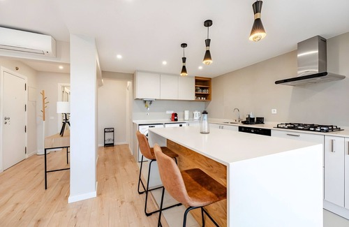 NEW. Modern apartment with a view of Alvalade Stadium, 3 bedrooms (including a suite), a spacious balcony, and an open-plan kitchen with island. Two bathrooms — one with a shower, the other with a bathtub. Ideal for families, groups, or remote work.