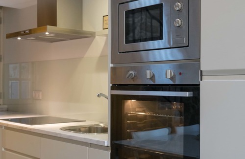 Layout: Ground floor: (Living room, open kitchen(cooker(3 ring stoves, induction), coffee machine, oven, microwave, dishwasher, fridge-freezer, washing machine), bedroom(double bed or 2 single beds), bathroom(shower, washbasin, toilet))