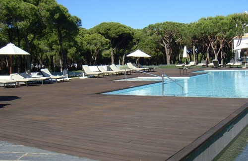 Townhouse (thown house) located in the luxury estate, 5-star Pine Cliffs Resort (Hotel Sheraton Algarve), 2 bedrooms, 1 suite, 3 bathrooms, patio and terrace with barbeque, living room, dining room and kitchen all fitted. Condominium on the beach Cliff, Elevator to the beach, 7 swimming pools (one heated) with gym, sauna, jaccuzi, lounge chairs at the pools and beach with umbrellas, sunshades and towels, all included. Private security. The Resort has 9 holes golf course, driving range, pitch and put, 5 Tennis Courts, Playground 'Porto Pirata', 10 restaurants, Academy of Golf and Tennis Academy, Club Beach and all services Hotel Sheraton Algarve.