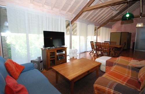 The heating keeps a warm ambience indoors. The living room has a fireplace and double sofa bed to relax. There is an outside shower to wash up after a swim. You can play table tennis or get active with the fitness equipment. The private roofed terrace is perfect to have fun around the barbecue in the evening. A cot and high is available for a small fee.